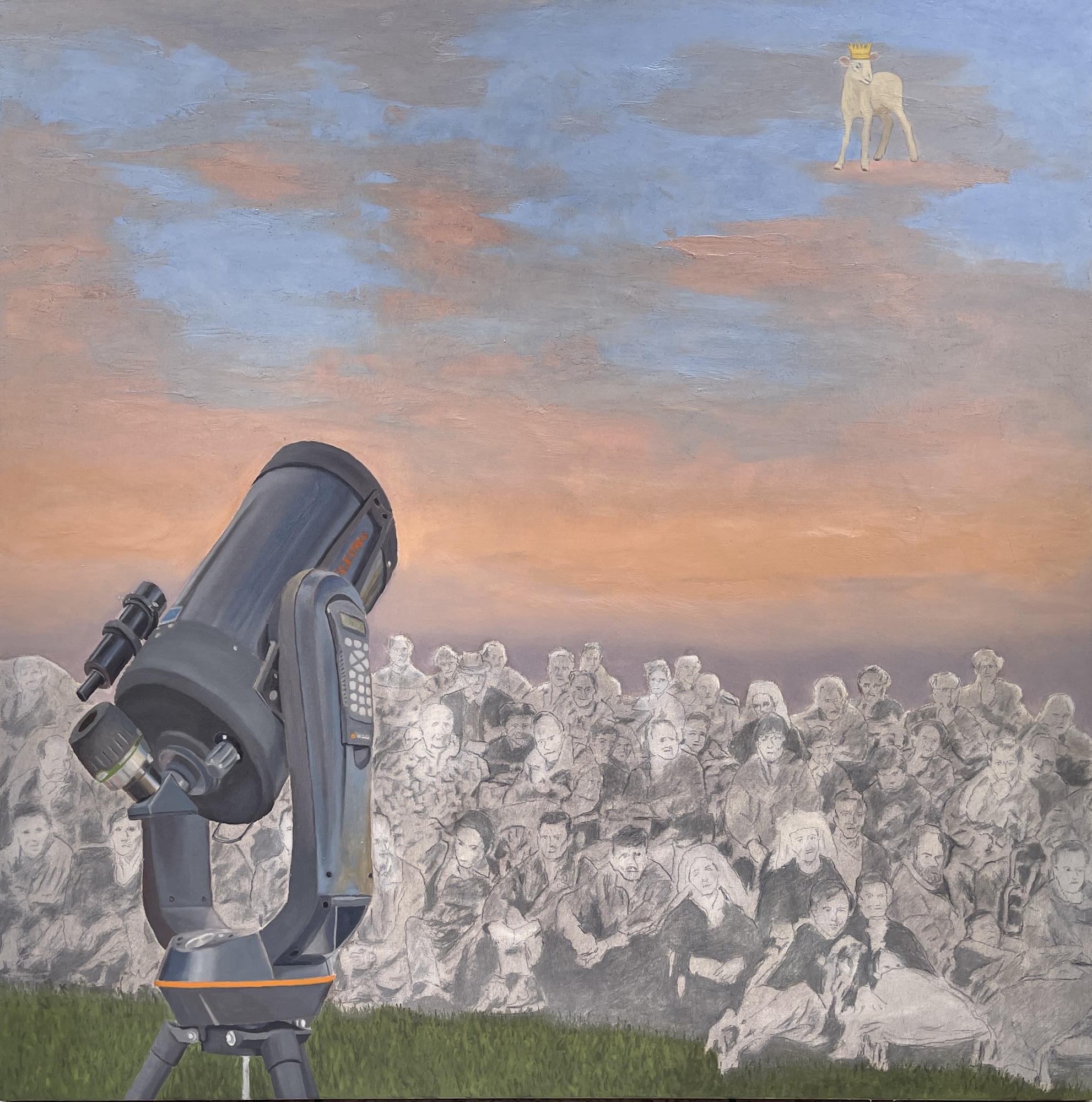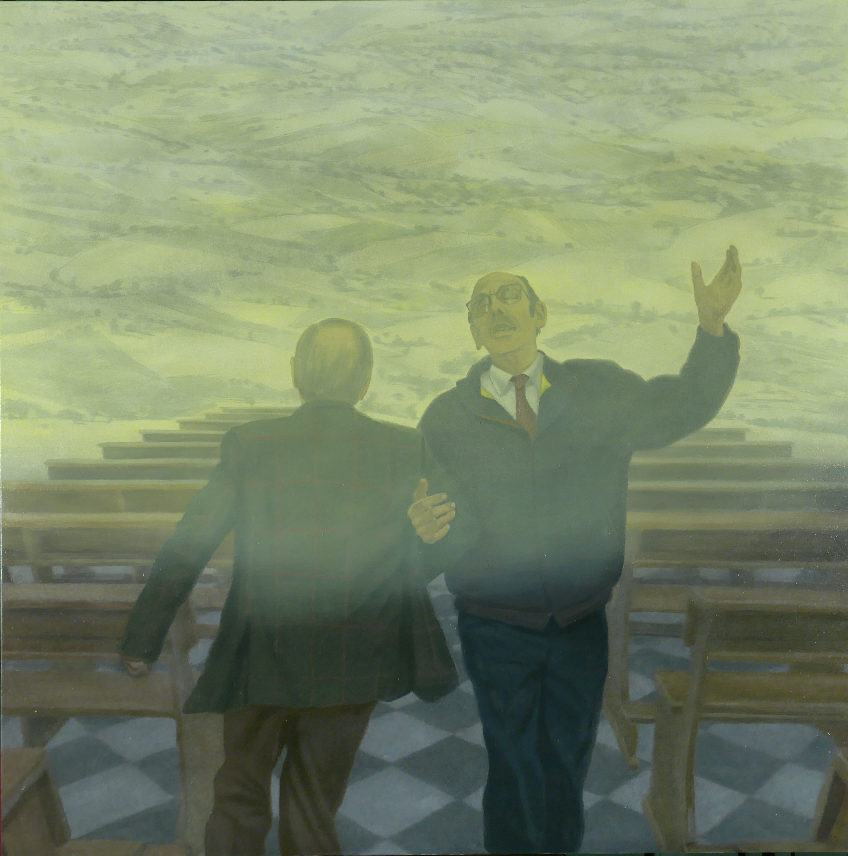 Avvistamento messianico, 2024, 80×80 cm, olio su tela