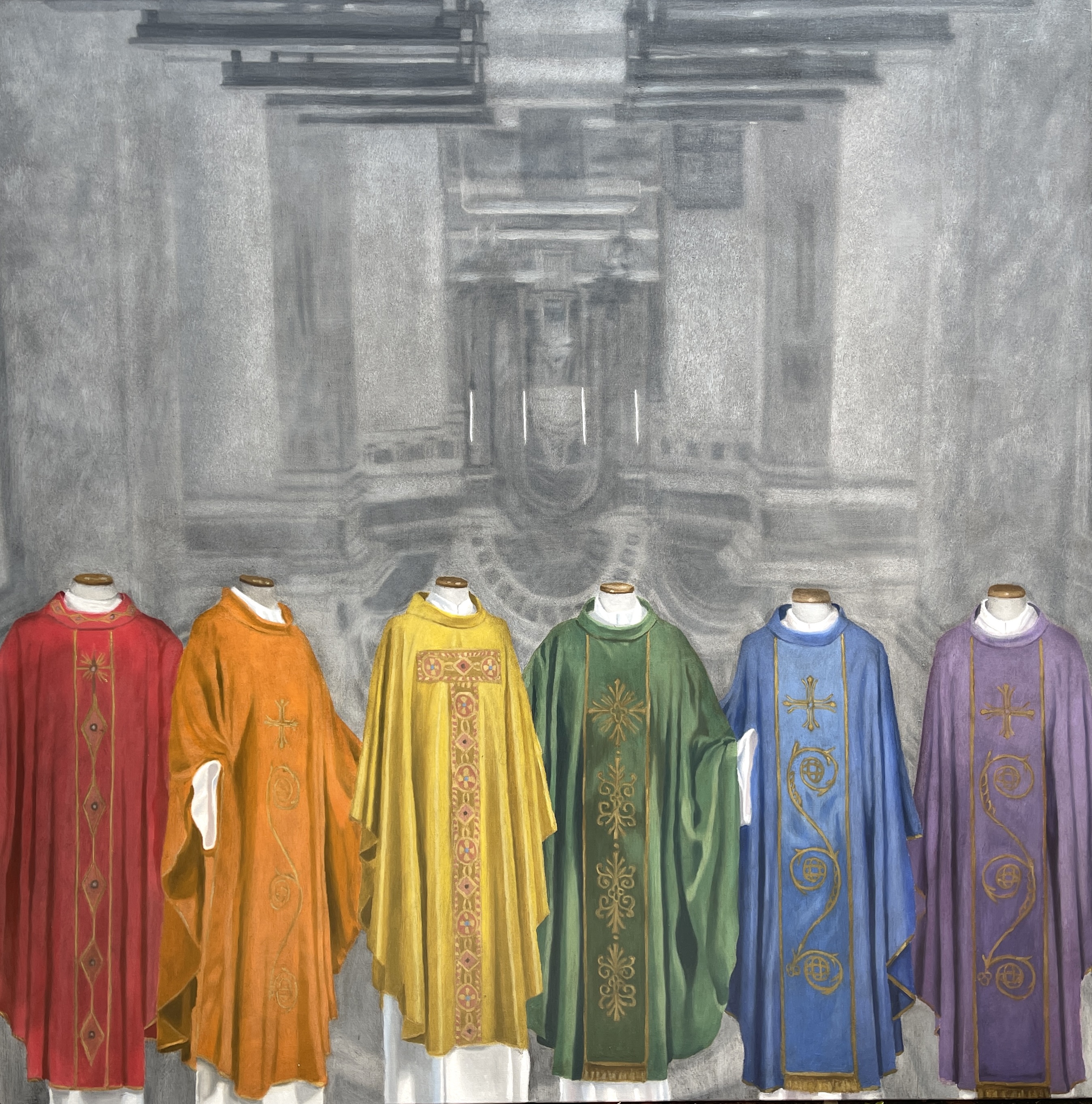 Svuotamento liturgico, 2022, 70×80 cm, olio su tela