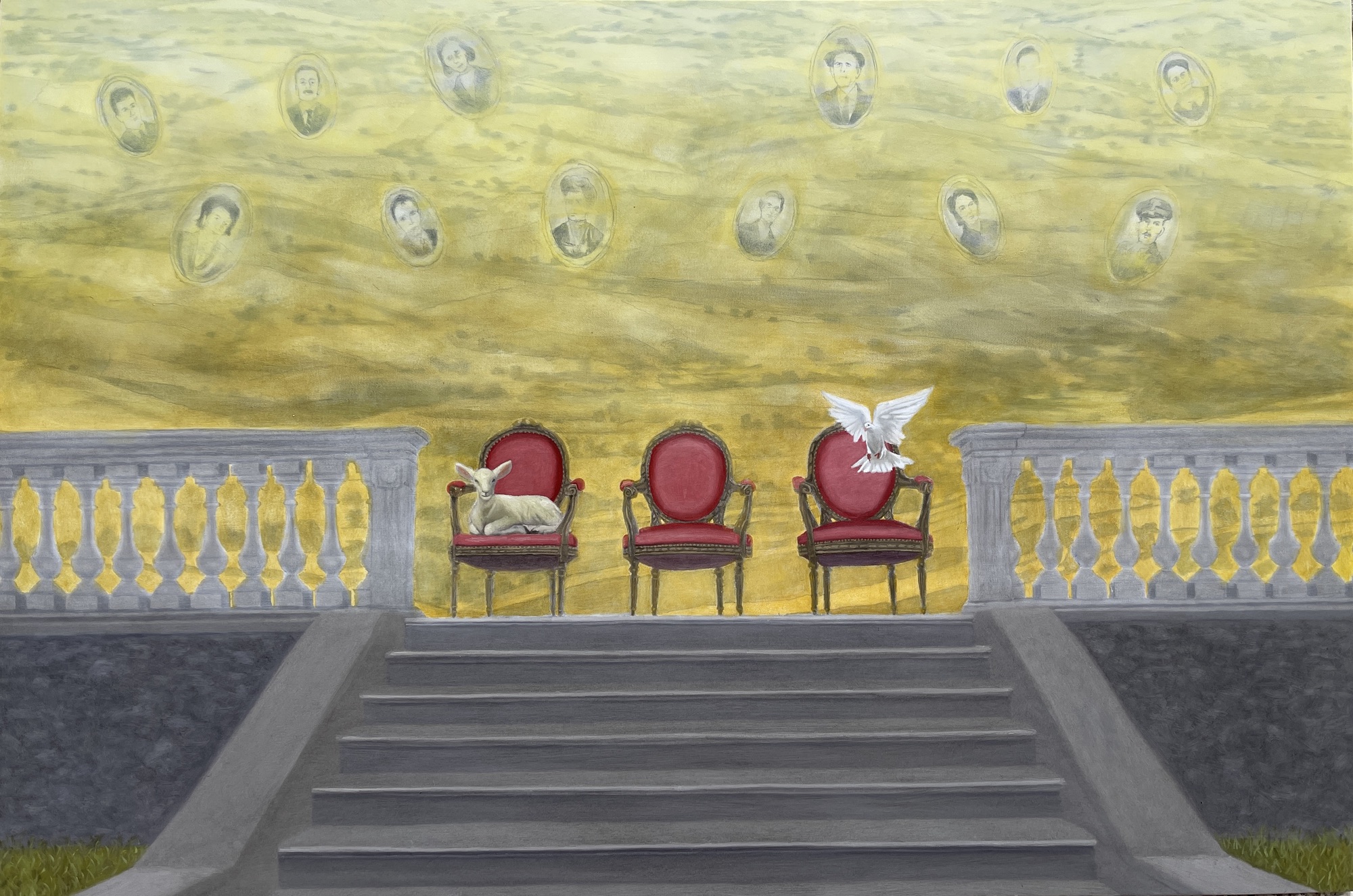 Il trono vuoto di Placidus, 2019, 70×100 cm, olio su tela